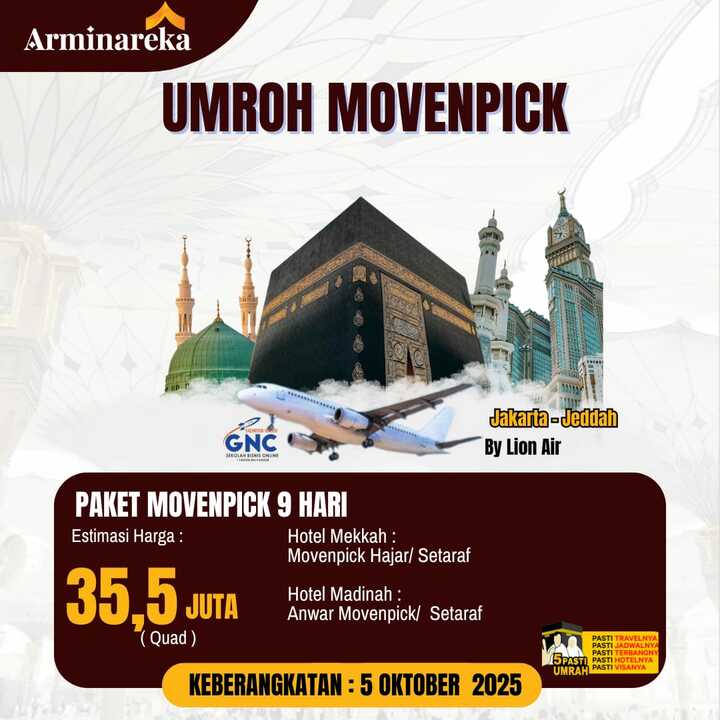PAKET UMROH MOVENPICK 05 OKTOBER 2025 ARMINAREKA
